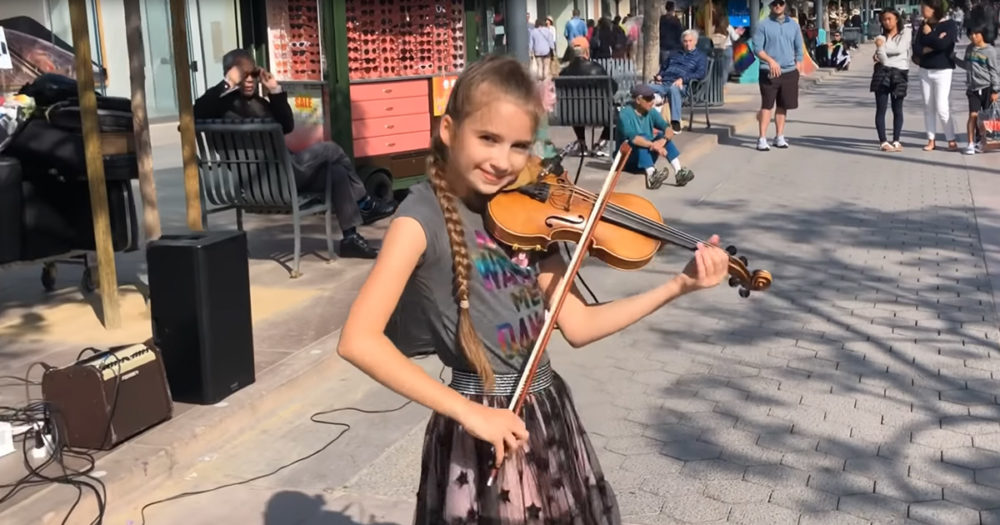 Recently, she was filmed standing in a public square with her violin. Karolina played a flawless rendition of the classic tune, “Somewhere Over the Rainbow.” People stopped what they were doing and listened to every note she played.