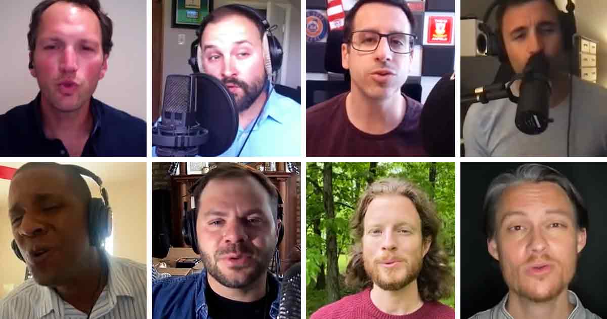 In this version, the members of the vocal groups perform together via technology, with each member representing a Zoom virtual square. Pictures of them and their mother appear on the screen as each one is highlighted.