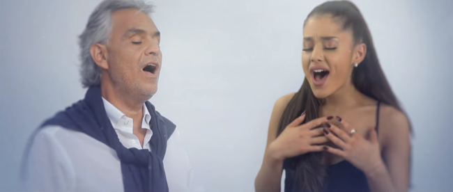 Click the video below and watch Ariana and Andrea deliver a duet, made in heaven.