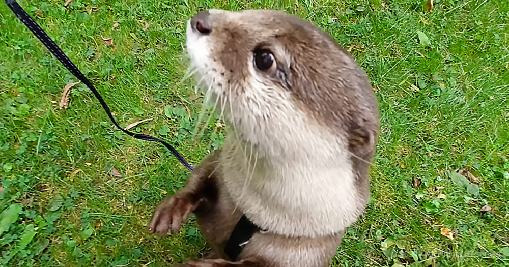 This pet otter has never seen cows before. His reaction is the cutest thing we’ve seen today.