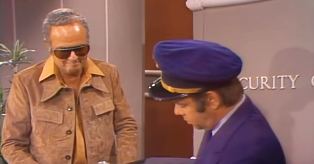 The episode revolves around a traveling filmmaker (played by Harvey Korman) who bumps into a security attendant (played by Tim Conway) for Speedo Airlines.