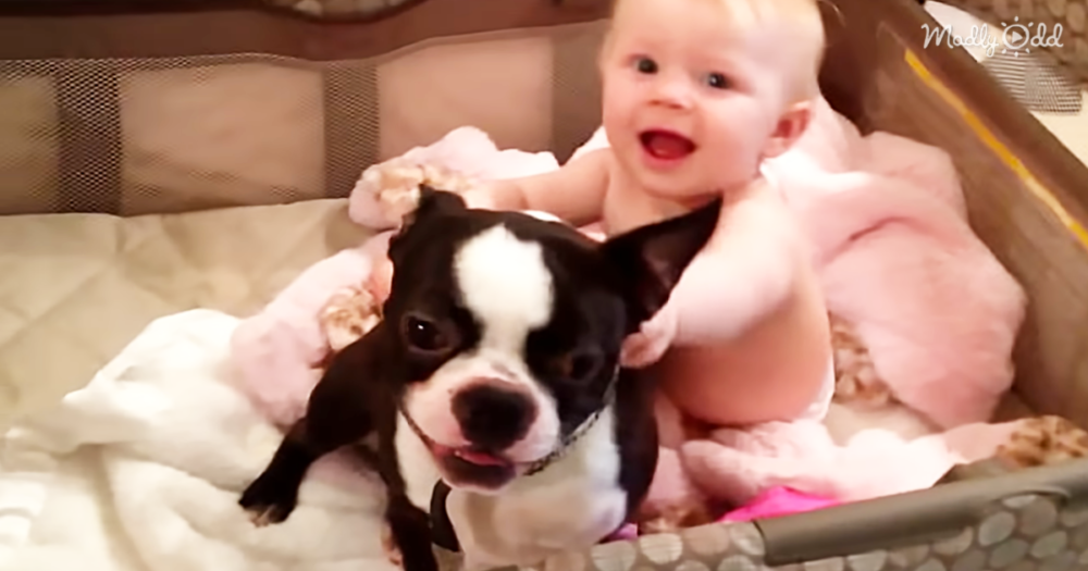 This Little Boston Terrier Loves Playing With His Human Sister In Her Crib – These Two Are Quite The Pair