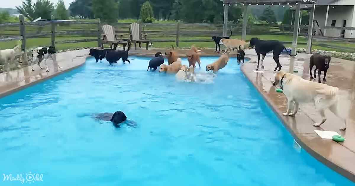 The sight of the dogs rushing into the pool has garnered significant attention online, with dog lovers appreciating the dogs’ carefree enjoyment. The dogs’ excitement was palpable as they scrambled towards the pool, some elegantly stepping in from the stairs. In contrast, others opted for a more energetic belly flop.