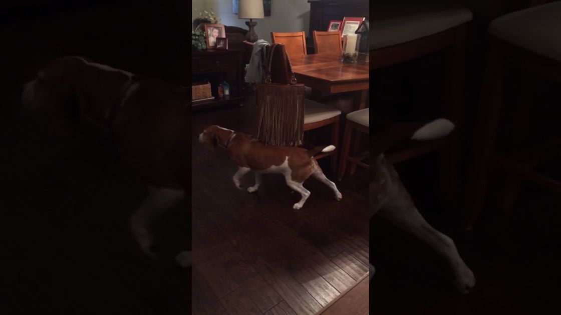 The video shows a beagle who is walking back and forth under a leather purse that has a lot of fringes on it. The dog is in heaven, having found something that makes him feel good. It sure beats having to roll around on the floor and the purse is doing the vast majority of the work for the pooch. He doesn’t even have to bother anyone to have them hold the purse – it’s already slung over a chair for him.