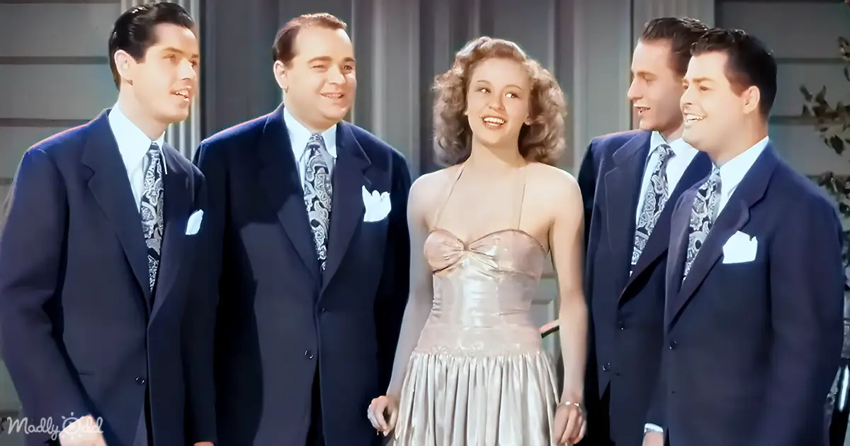 Next, we’re introduced to The Glenn Miller Modernaires. This ensemble, consisting of four dapper men and a woman, crooning a love song that tugs at the heartstrings. The striking attire of the female singer, contrasted with the men’s sharp suits, is a sight to behold. And the music? Simply mesmerizing.