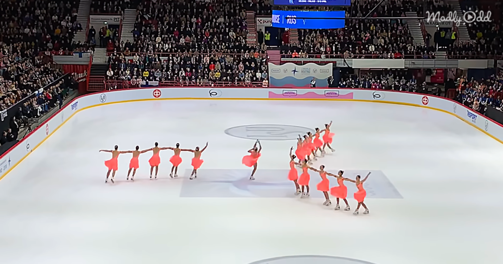 The video below shows them skating in a competition called the World Synchro Helsinki that were hosted in April 2019. The ladies, all elegantly dressed in peach skating costumes, are seen starting their show, standing in three rows. They then elegantly glide and become two rows, the ladies moving in pairs. They form two rows and then elegantly skate between each other.