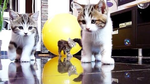 The kittens see that soap bubbles floating in the air. Only when they try to catch one, it pops, but the kittens don’t seem to understand what happen to the bubble. The kittens also watch the soap bubbles descend to the floor only disappear as well. The kittens just can’t seem to grasp why these bubbles aren’t lasting so they can play with them.