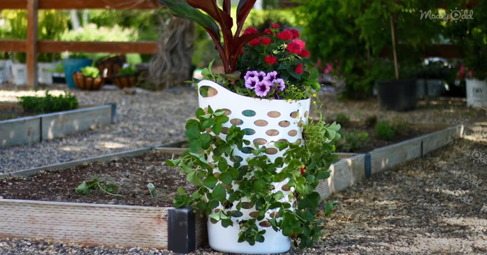 Luckily, some talented individuals generously give some gardening tips. One of those is this lady who manages to grow some strawberries using a laundry basket.