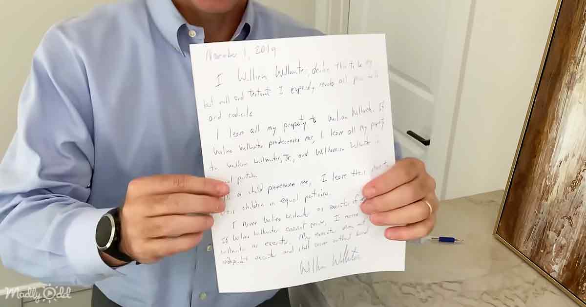 Next, he begins writing the pretend will of Will Writer by following these simple steps: