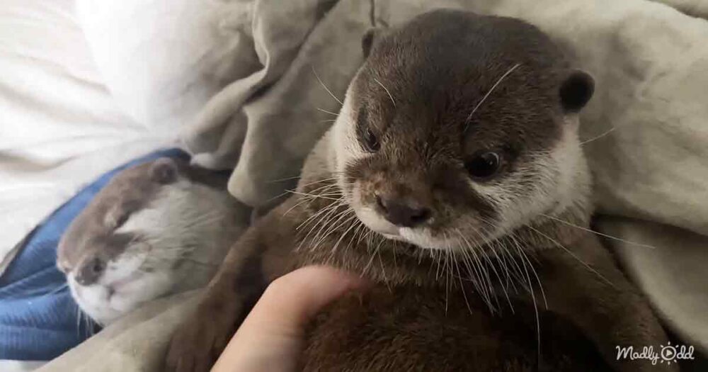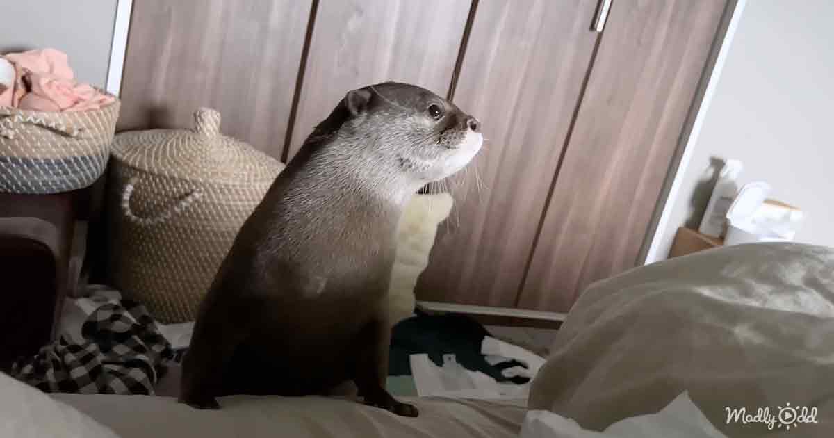 Hana joined Kotaro in the morning, but the cute otter was soaking wet. As soon as she jumped on the owner’s bed, she made the whole bed wet. This made Kotaro angry as he was scared because his nest got messy. Finally, the sleepy owner decided to wake up and took the two otters in his arms.