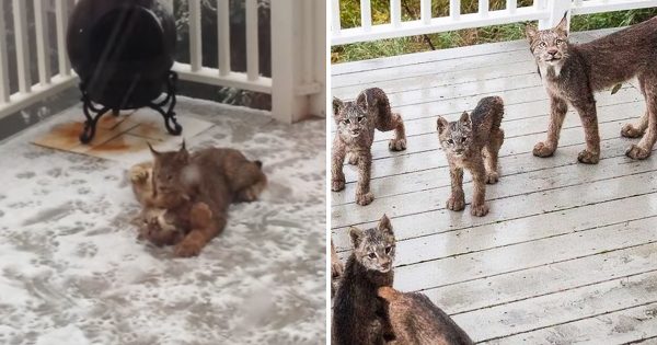 For forty enchanting minutes, the porch transformed into a stage where nature’s wonder performed a private ballet. The kittens darted, somersaulted, and huddled close to one another, their tufted ears and wide eyes drinking in their world. Tim couldn’t help but marvel—not just at their beauty but at the sheer audacity of such a rare family choosing his porch for their frolic.