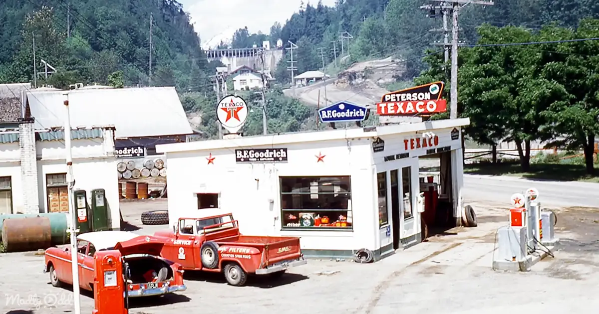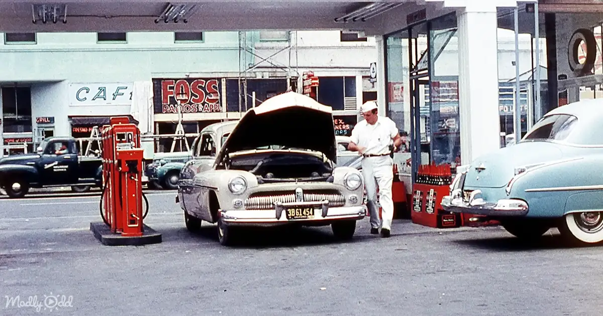 We’re about to take a trip down memory lane, back to the good ol’ 1950s, and visit some of America’s most charming old gas stations in full color! So buckle up, buttercup, and let’s hit the open road together.