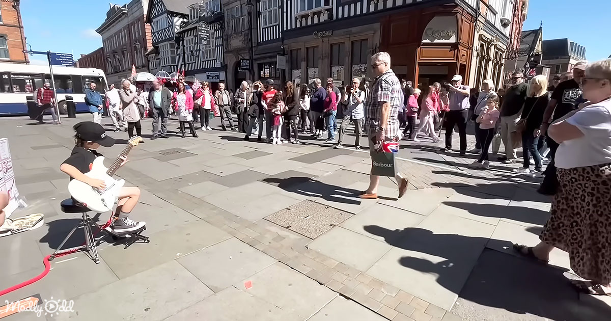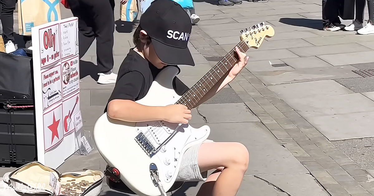 Every once in a while, the world is blessed with a young talent that leaves audiences in awe. In the heartwarming city of Chester, something magical unfolds outside JD Sports Store. There, an extraordinary 8-year-old boy, Olly, takes center stage, captivating passersby with his remarkable guitar skills.
