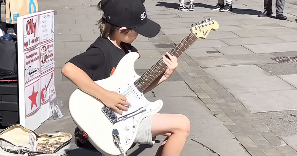 Every once in a while, the world is blessed with a young talent that leaves audiences in awe. In the heartwarming city of Chester, something magical unfolds outside JD Sports Store. There, an extraordinary 8-year-old boy, Olly, takes center stage, captivating passersby with his remarkable guitar skills.