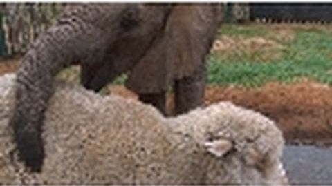 The staff at the Shamwari Game Reserve thought it best to traquilize Themba and bring him to them so that they could try to give him some milk. They did, we see the other elephants scattering and a group of them lugging him on a tarp of some sort. Once he got there, he was drinking water but he wasn’t drinking the milk which had the nutrients that he needed. Everyone was stymied… then they tried something. They brought a sheep from a neighboring reserve. His name was Albert and they hoped the two became friends.