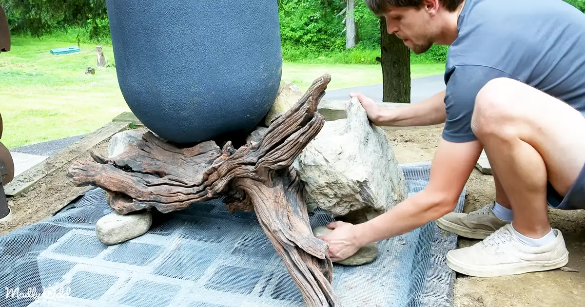 Now, for those of us who’ve never taken on such a project, the thought might seem daunting. But watching Tanner in action, we couldn’t help but feel inspired. His meticulous approach, from cleaning the canvas, gently moving a millipede to safety, ensuring the level of the platform, to assembling the fountain with the cinder blocks and pressure-treated spindles, was truly commendable. We could see ourselves emulating his steps, feeling the same pride when placing each stone and plant, and the sheer satisfaction of watching everything fall into place.