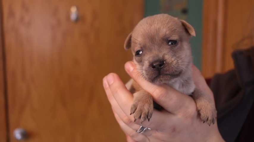 Bobby, the Chihuahua, was just two days old when his mom was struck and killed by a car. Faith O’Georgia, a staffer at the Michigan Humane Society, explained that the puppy needed a mother’s care.
