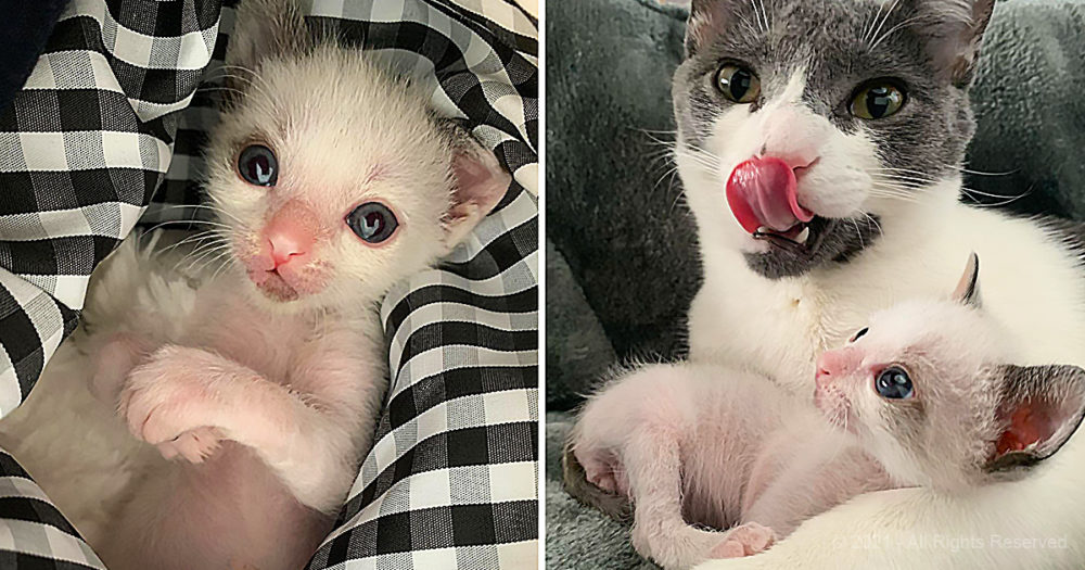 When Guinness the kitten was born, his mother rejected him. That meant that at three weeks of age, he was no bigger than a newborn.