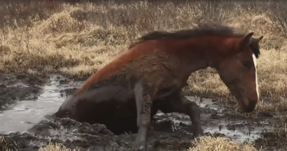Rescuers Work Hard Freeing Wild Horse Stuck in Mud
