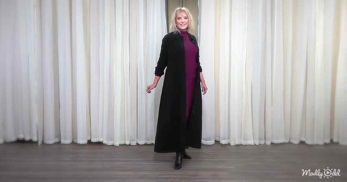 Linda emerges in a full-length eggplant-colored dress, and black sweater. She wears full evening makeup as if she’s ready for a night on the town. This lady does not look even close to sixty-five.