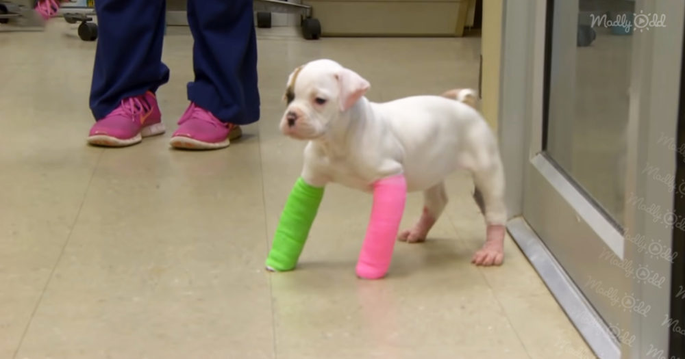 They mention that Tania is not a puppy person but she immediately falls in love because of Blance’s adorable face. It may still be a few months before she can take the wraps off her legs.