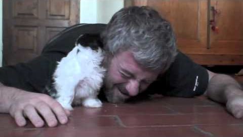 He Laid Down Next To His Little Puppy On The Floor And The CUTEST Thing Happened! AWW!