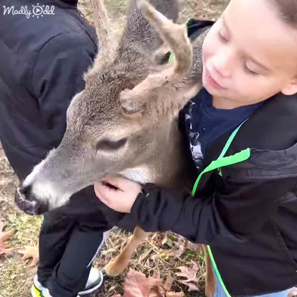 They named him Scar because he always has scars on him! The Harris family seems to know her and knows it is safe for their son to pet him. She is so gentle and tame that it is almost unreal! Deer like all different types of snacks. They usually like apples, carrots, and greens, but he gets a biscuit in this video! This may be a welcome change for him!