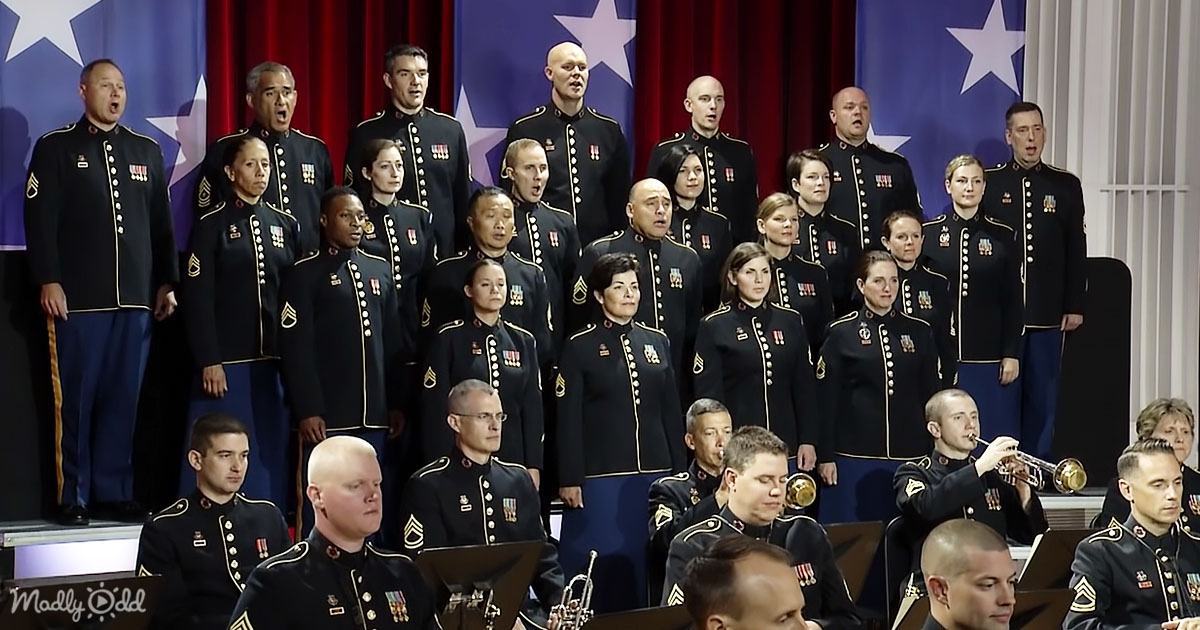 The video clip begins with the United States Army Field Band members onstage, immaculately dressed in their uniforms. They aren’t merely musicians or singers but valiant military personnel, men and women, ready to narrate a saga of fortitude through song. As they position themselves to perform the song, a palpable sense of expectation fills the air.