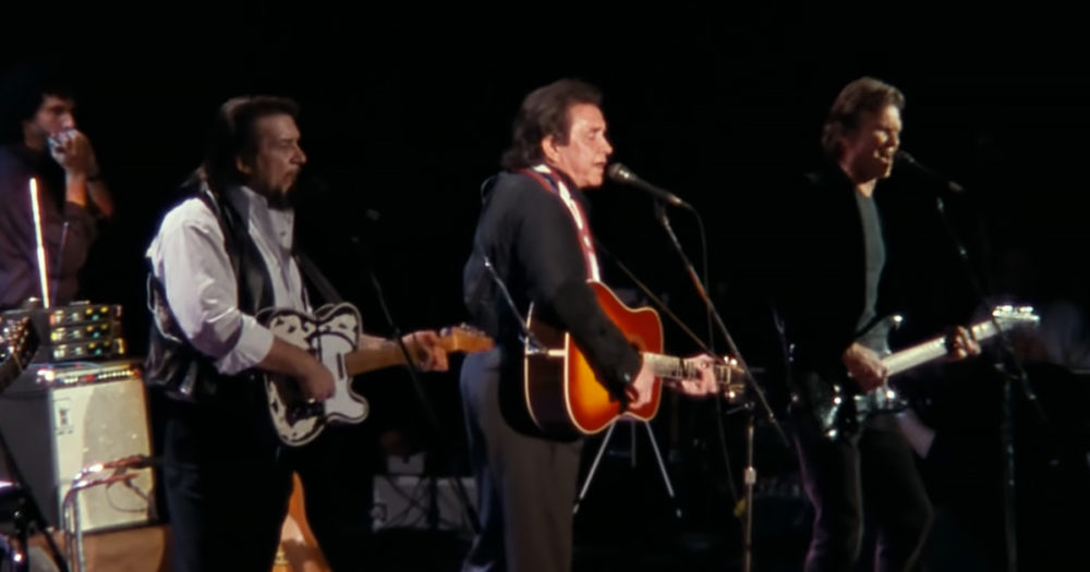 In this clip, The Highwaymen sing “Sunday Morning Coming Down,” written by Kris Kristofferson but made famous by Johnny Cash.