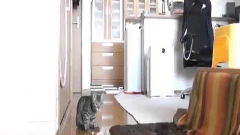 But the best block is at the 30-second mark. The cat jumps up and smacks it back down. A slow-motion repeat is shown right afterwards.