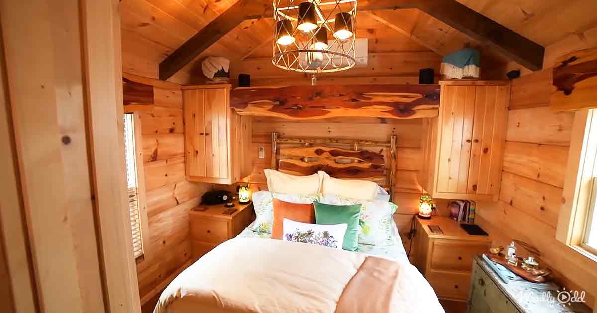 He relocated into a cozy 400-square-foot log cabin with warm wooden interiors all throughout. An electric fireplace in the main room adds to the ambiance and keeps Charles and Bob warm in the winters.