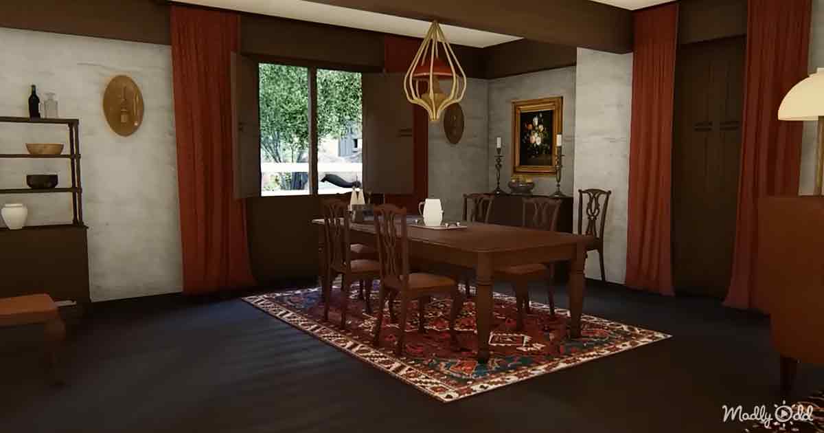 At first, Ben Cartwright’s character was stern, but Lorne Greene recommended that the character be changed to have a warmer relationship with his son. The change was allowed, and Ben became the wise, loving father we all remember. The 3D modeled tour of the upstairs shows everyone’s bedroom set to Western music. It is a fascinating look into the set of the hit TV show ‘Bonanza.’