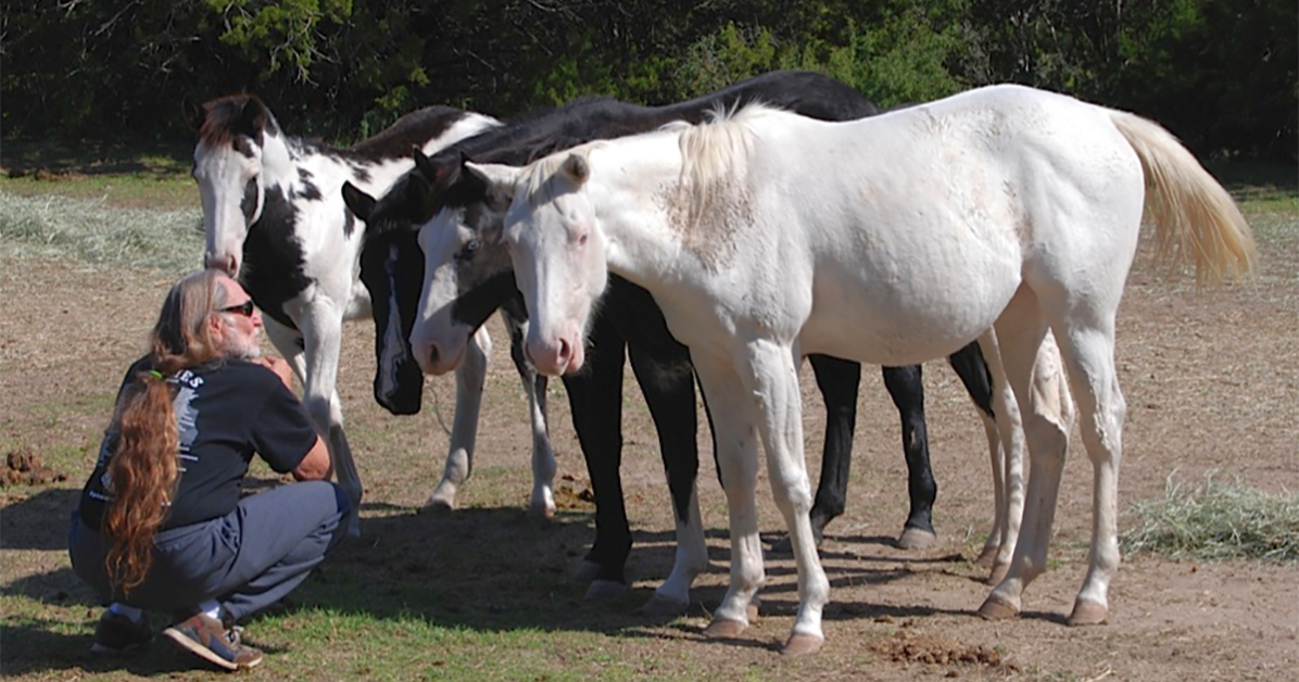 Rescue horses roam Willie Nelson’s Texas ranch.